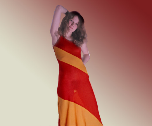 Trotz der Kameraerfahrung war sie am Anfang verkrampft. Ich ließ sie, nachdem sie sich umgezogen hatte, auf die Kamera zu gehen und an einer bestimmten Stelle eine langsame Drehung vollführen. Das wurde mehrfach wiederholt. Sowohl während sie auf die Kamera zu kam als auch während der Drehbewegung machte ich Fotos.