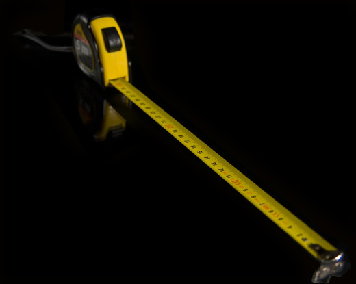 Bei diesem Foto liegt die Schärfenebene praktisch unmittelbar auf dem Bandmaß. Nach vorne nimmt die Unschärfe drastisch zu.